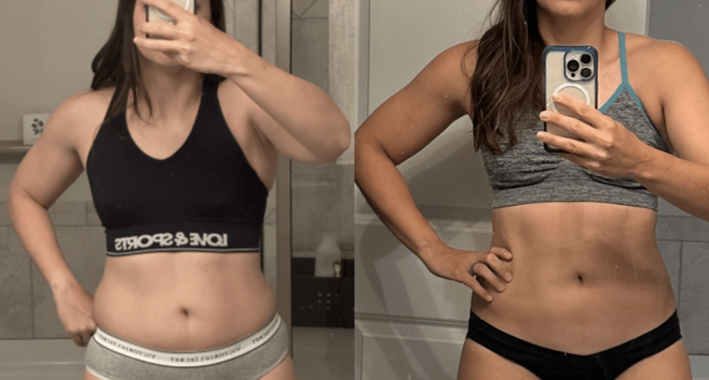 6-week progress! What did we do? 21-day Infinite You Anti-inflammatory Detox Meal Plan, 4 functional strength workouts per week, increased water intake, full comprehensive hormone testing, started hormone protocol supporting her adrenal function and reducing estrogen dominance, integrated macro focused meal plan to support her hormone healing journey.
